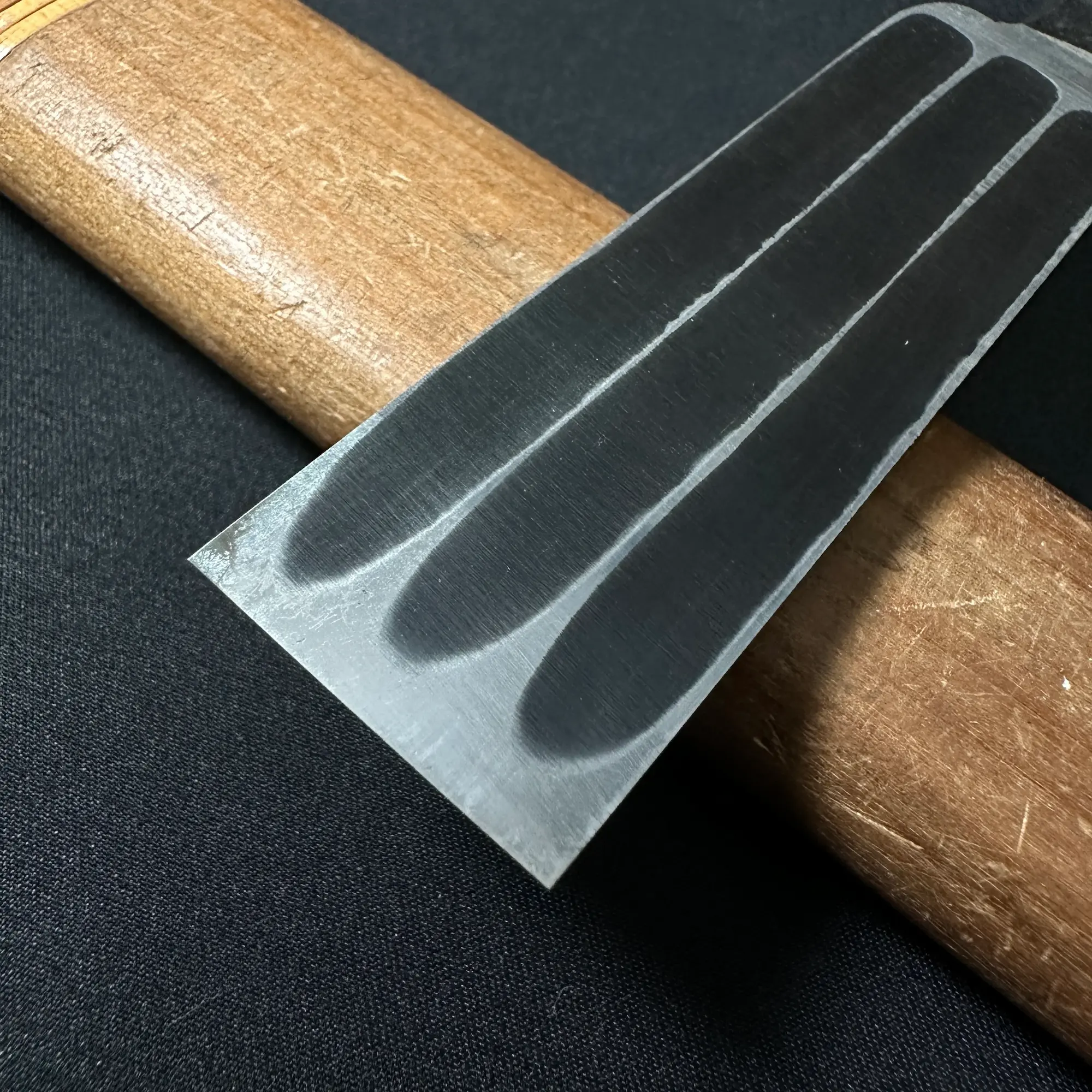 Lo scalpello occidentale moderno è tipicamente "Solid Steel". Utilizza acciai come l'O1 (ricco di manganese, facile da affilare) o l'A2 (con cromo, più resistente all'usura ma più ostico da profilare). La durezza si attesta sui 58-61 HRC. Il Nomi giapponese adotta la struttura Ni-mai: un corpo in ferro dolce o acciaio a basso carbonio (Jigane) funge da supporto elastico per un tagliente in acciaio duro purissimo (Hagane). L'Hagane è spesso estratto dalle sabbie ferrose di Shimane e può essere Shirogami (White Paper Steel), puro e capace di un filo atomico, o Aogami (Blue Paper Steel), addizionato con tungsteno e cromo per una durata del filo leggendaria. Qui la durezza tocca i 65-67 HRC, livelli che renderebbero uno scalpello occidentale fragile come vetro, non avendo il supporto del ferro dolce che assorbe le botte e ammortizza.