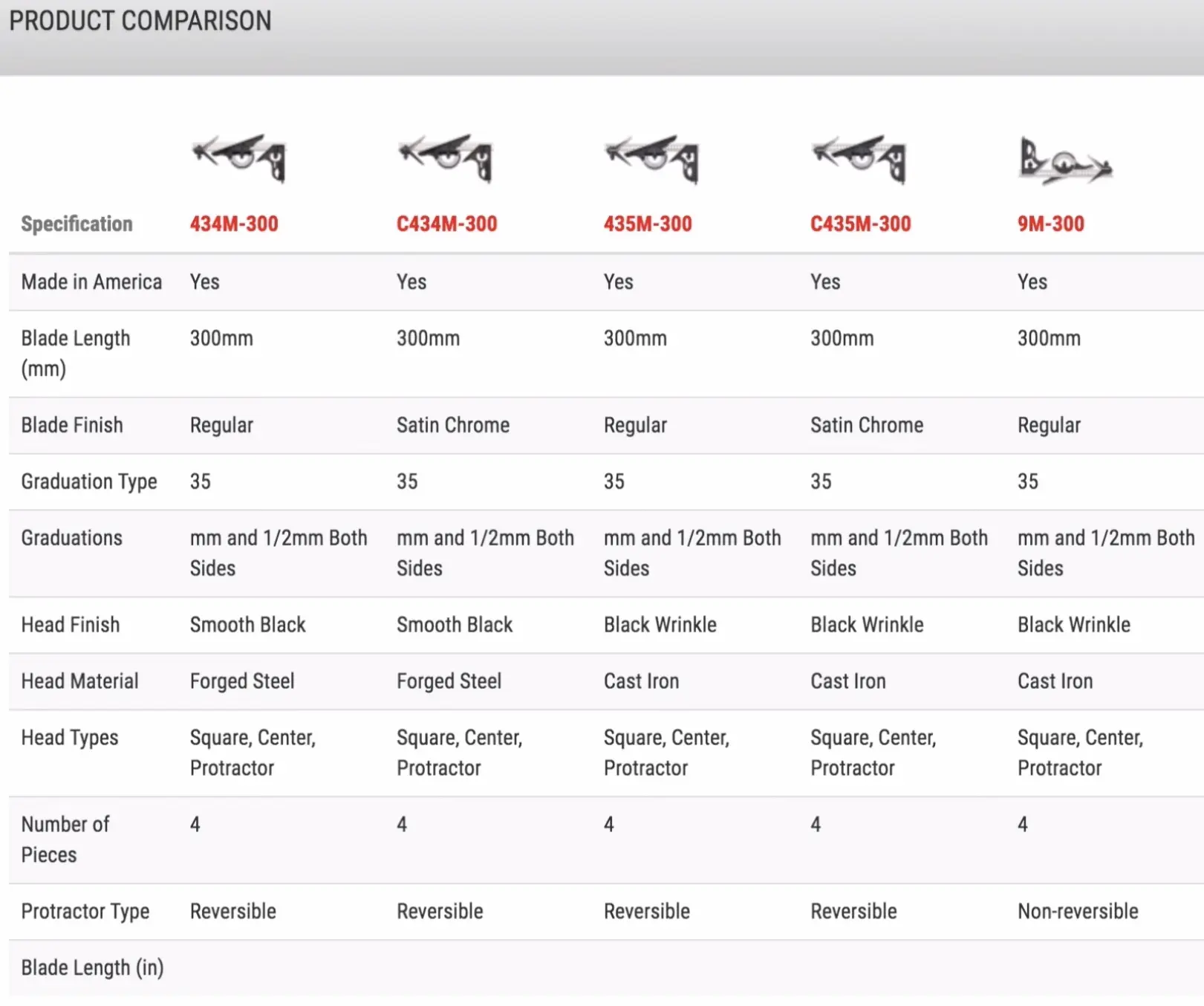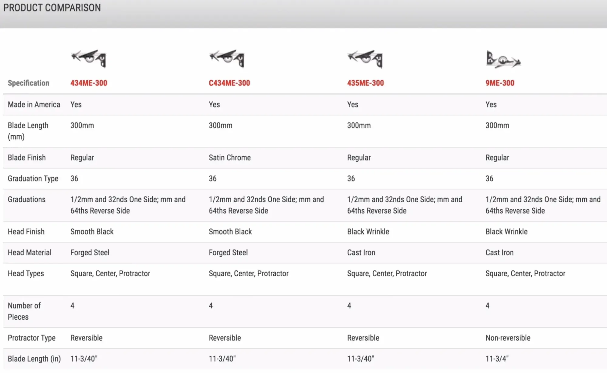 Attenzione a quest'ultima eccezione: il kit Starrett 9M-300 presenta un goniometro non reversibile, quindi a mio avviso, dei cinque codici per misurazioni metriche e millimetri, è quello meno utile.