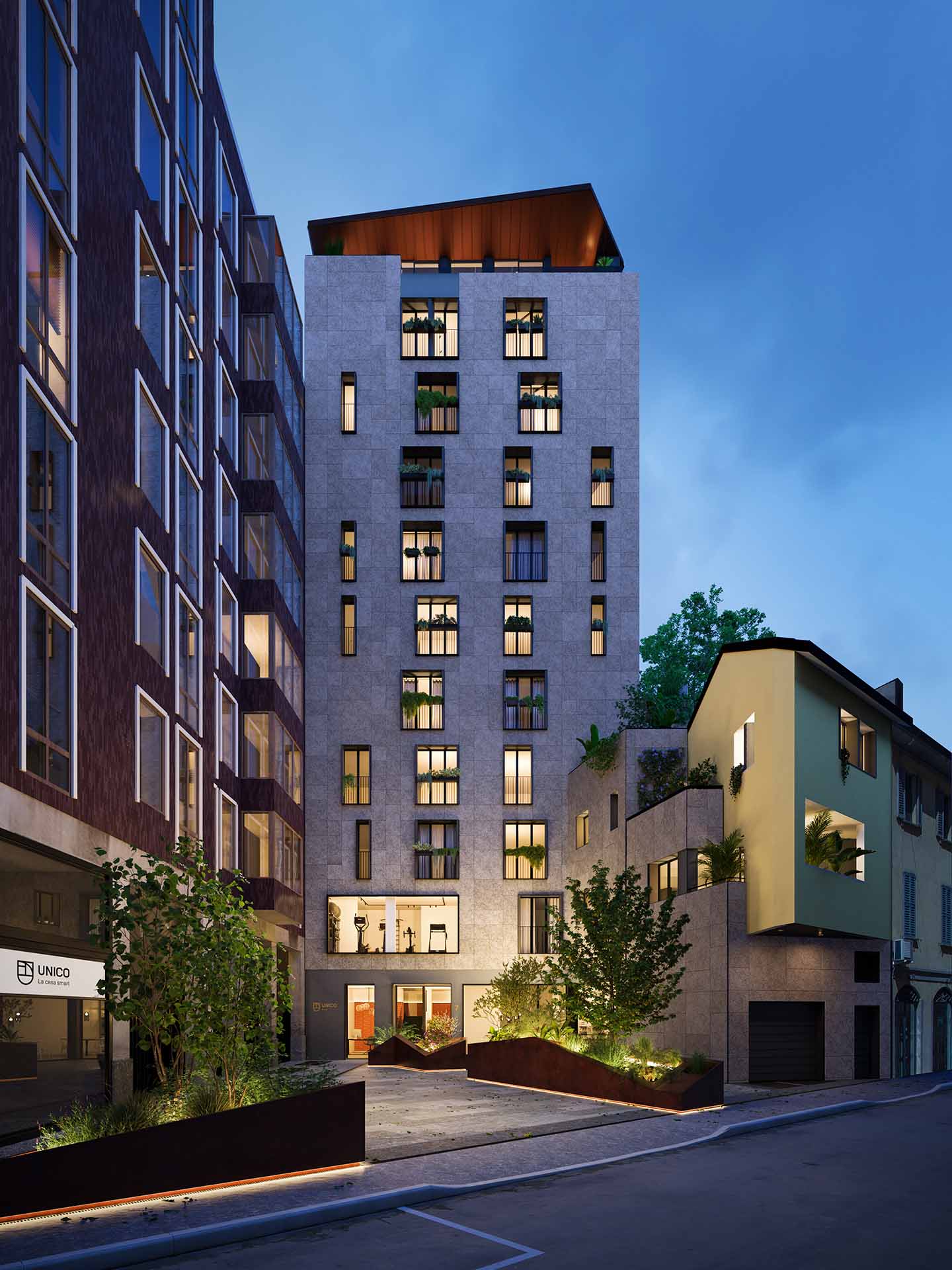 - 2.300 metri quadrati di superficie commerciale, 27 appartamenti, amenities esclusive (palestra, coworking affacciato sullo skyline).