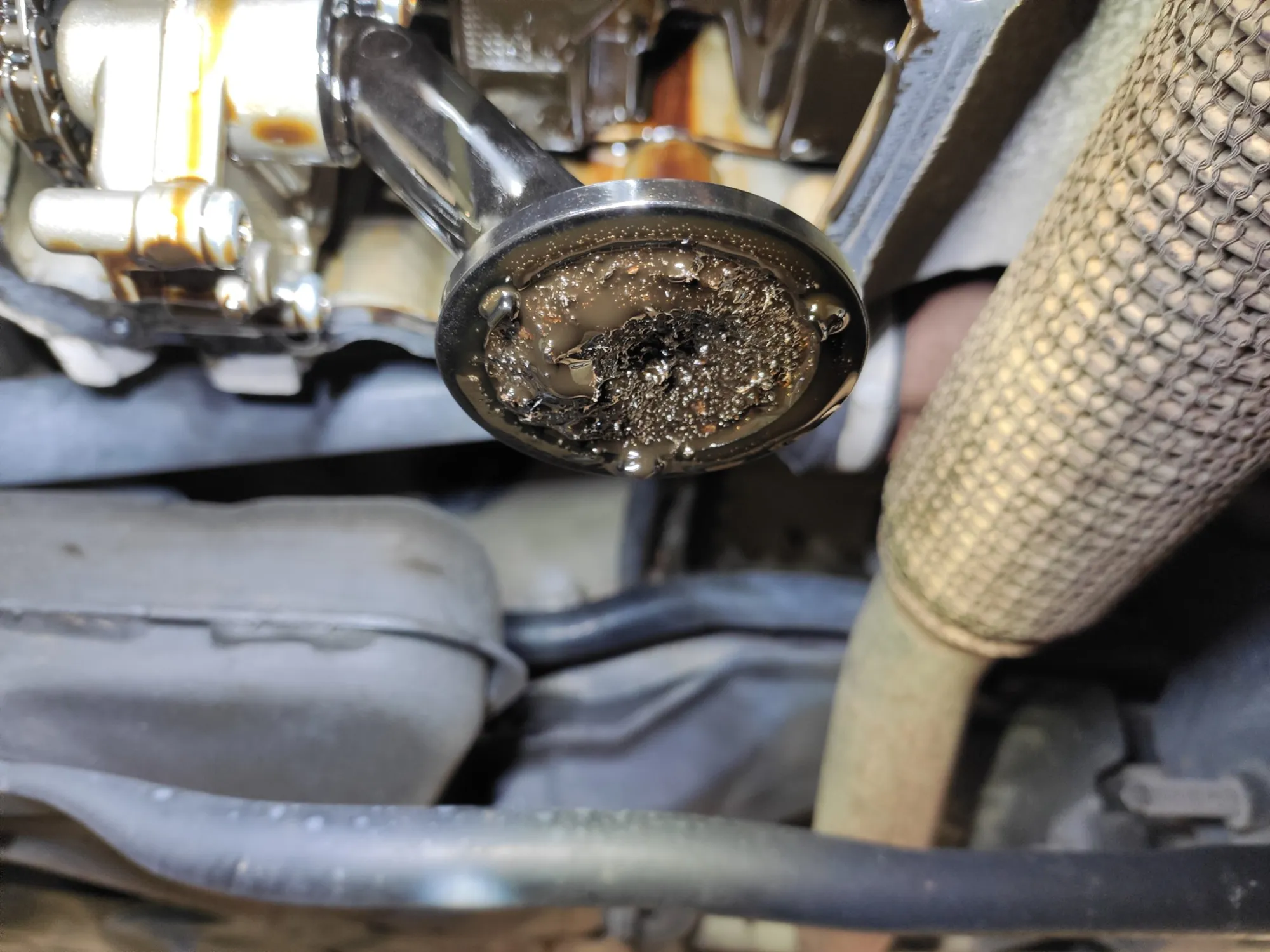 Il vero tallone d'Achille del PureTech non è solo la rottura della cinghia, ma la sua polverizzazione. In condizioni di uso prevalentemente urbano (cicli brevi, motore freddo), avviene il fenomeno della diluizione dell'olio: la benzina trafila dalle fasce elastiche e contamina il lubrificante, aggredendo chimicamente la struttura molecolare della cinghia. La gomma si gonfia (swelling) e inizia a perdere frammenti di rivestimento. Questi residui finiscono nella coppa dell'olio e vengono aspirati dal "succhiello" della pompa, ostruendolo.